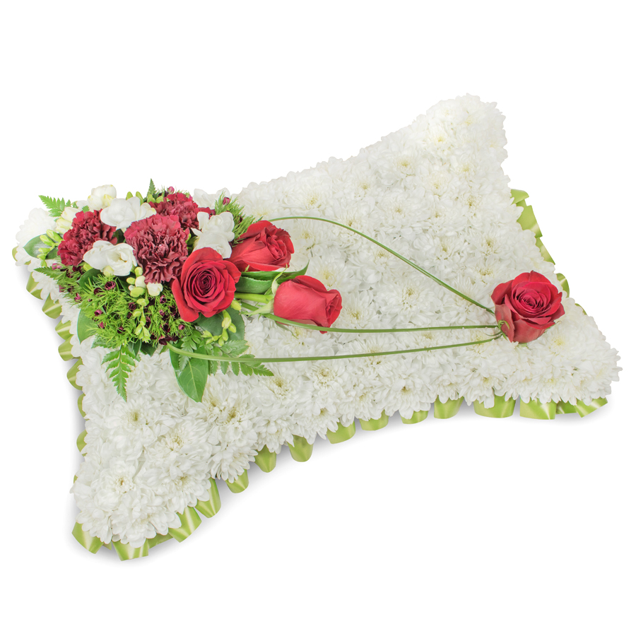 Send a message of deep compassion with our Exquisite Sympathy Floral Arrangement. This stunning bouquet combines the purity of white chrysanthemums with the passion of red roses, the delicacy of white freesias, and the richness of dark red carnations, enhanced beautifully by dianthus and bear grass. Each flower is carefully hand-picked for optimal freshness and color vibrancy.